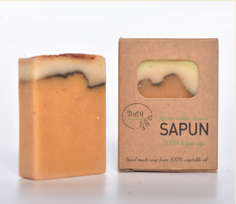 Sastav: Saponrfilrovano maslinovo, palmino i kokosovo ulje, kurkuma, voda, NaOH. Eterično ulje limun trava.
